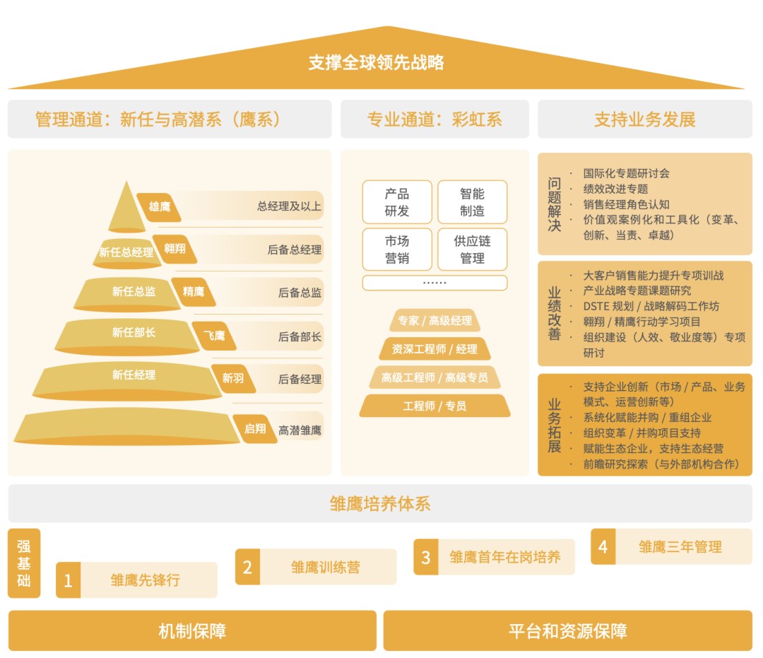 TCL科技将员工视为最宝贵的财富,并为之构建了完善的“专业与管理双通道”人才培养体系。通过“雏鹰-飞鹰-精鹰-雄鹰”的鹰系项目,公司系统性地培养从后备人才到高层管理者的各级精英。同时,“彩虹系”专业通道为技术研发、智能制造等领域的专业人才提供了清晰的晋升路径。